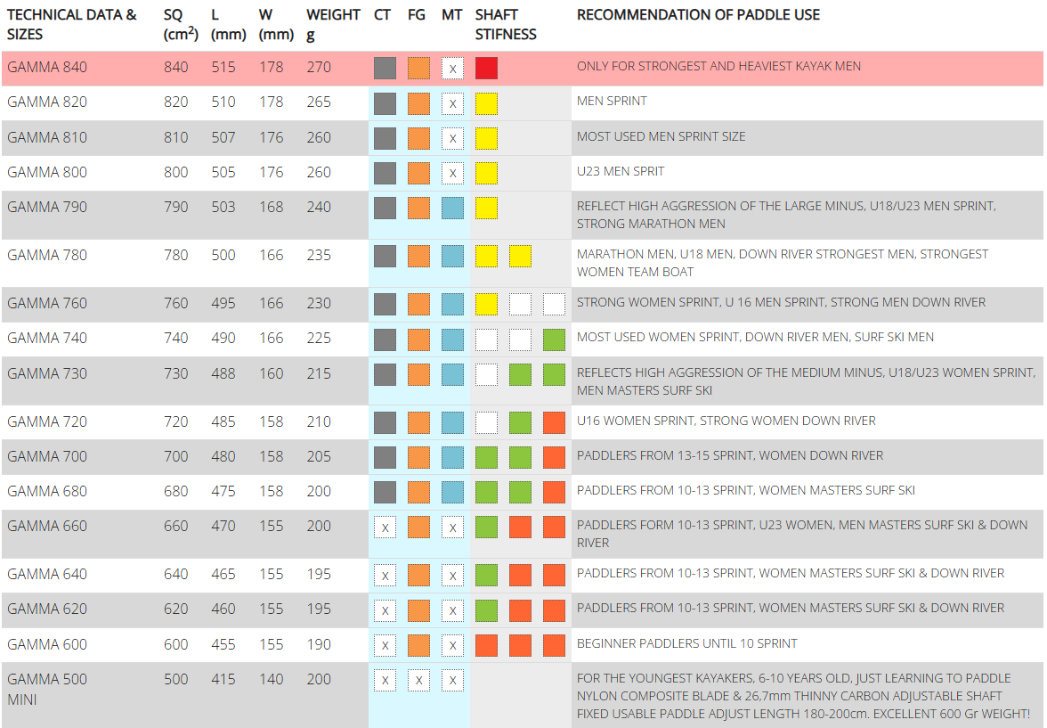 Gamma, insanların kürekle tanışma şeklini değiştiren orijinal bir Jantex tasarımıdır ve artık çoğu ana markanın kataloğunda bulunan bir şekildir;